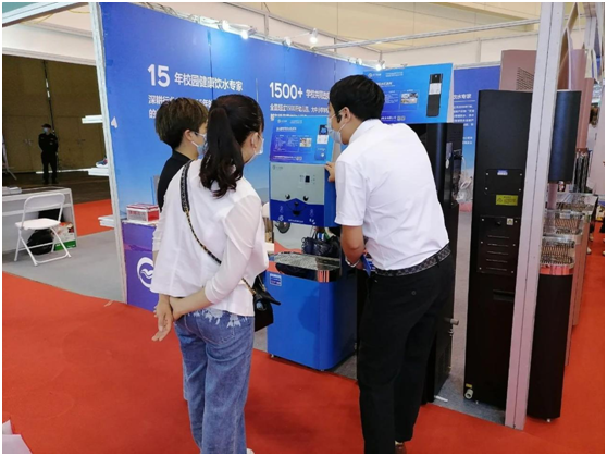 除了靚麗的飲水設備之外,艾龍的校園智慧飲水解決方案更是現場的一大重頭戲,不少現場觀眾饒有興致地前來了解:云物聯系統、在線水質監測……對于他們的問題,現場的艾龍精英們一一作答,為大家充分解惑。