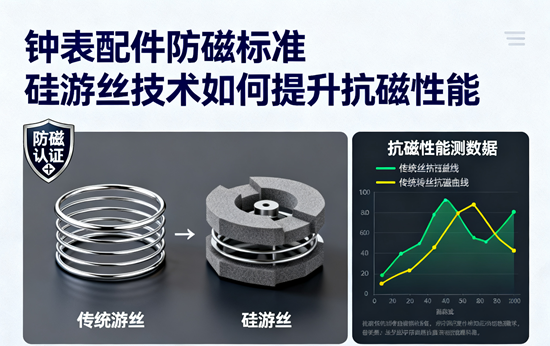 在精密機械制表領域,磁場干擾始終是影響腕表走時精度的核心挑戰。傳統金屬游絲在磁場環境中易磁化,導致游絲粘連、擺輪頻率偏移,進而引發日誤差超標甚至停走。根據國際標準ISO 764及中國QB/T 1899—2007標準,防磁表需在4800A/m磁場中持續運轉且24小時誤差不超過30秒,而現代生活中手機、電磁爐等設備的磁場強度普遍超過傳統防磁表的抗磁閾值。在此背景下,硅游絲技術憑借其非金屬特性與精密制造工藝,成為突破防磁瓶頸的關鍵創新。