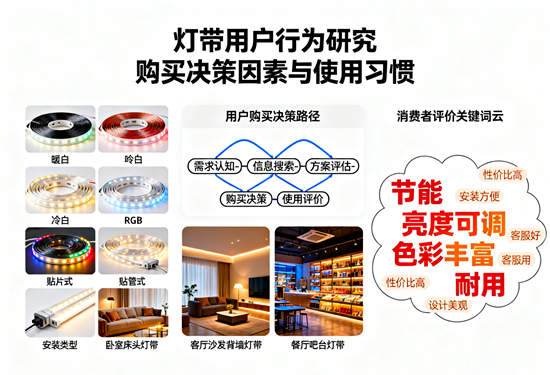 隨著LED照明技術的成熟與普及,燈帶已從傳統的裝飾性照明產品,演變為集功能性與藝術性于一體的家居照明解決方案。據行業數據顯示,2025年我國燈帶市場規模預計將達到XX億元,年均增長率保持在15%以上。在這一快速擴張的市場中,深入理解用戶購買決策因素與使用習慣,已成為企業制定精準營銷策略、優化產品設計的關鍵所在。本研究通過分析消費者行為數據,揭示燈帶市場的深層需求與未來趨勢。