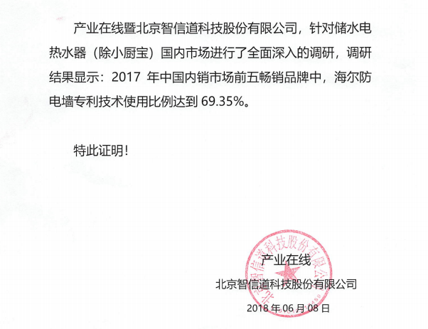 作為電熱水器十大品牌,海爾于2002年開發了專利防電墻技術,并于2007年成為國家強制性電熱水器安全標準,并被納入國際電工委員會標準,成為唯一被納入國際安全標準的國內電熱水器安全技術。
