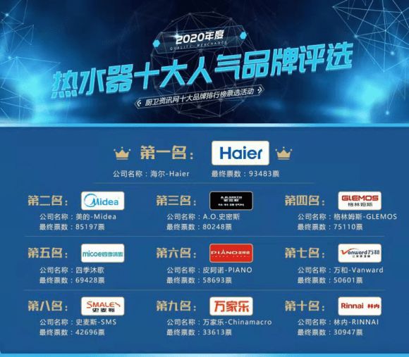 與此同時,格林姆斯還是百萬網友評選出的2020年度的“熱水器十大人氣品牌”,名次僅次于海爾、美的等品牌,位居第四名,深受到消費者熱烈的歡迎和廣泛的支持。