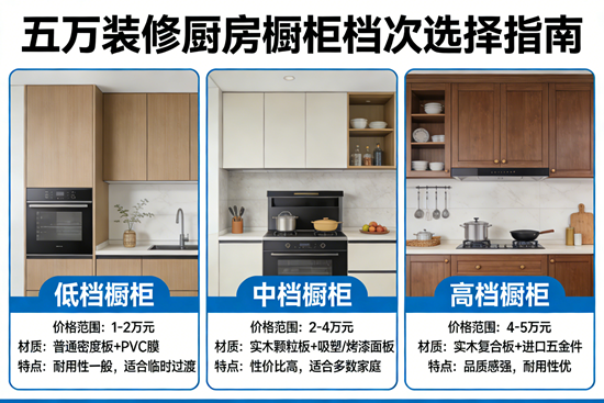 雖然小作坊報價極低(可能全套只需幾千元),但其環(huán)保性能、封邊工藝、板材耐用度均存在巨大隱患。廚房是高溫高濕環(huán)境,劣質(zhì)板材容易變形、釋放甲醛。5萬預(yù)算說明您對生活品質(zhì)有要求,為了省幾千元而犧牲健康和使用壽命,絕非明智之選。