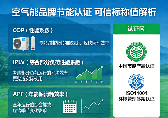 在“雙碳”目標深入推進的今天,空氣能熱泵憑借高效節能特性,已成為家庭采暖、熱水領域的熱門選擇。然而,面對市場上琳瑯滿目的產品宣傳——“COP高達5.0”“一級能效”“節能70%"等標稱值,消費者常陷入困惑:哪些數據經得起推敲?哪些認證真正可信?本文將撥開迷霧,為您厘清空氣能節能認證的核心邏輯與辨別之道。