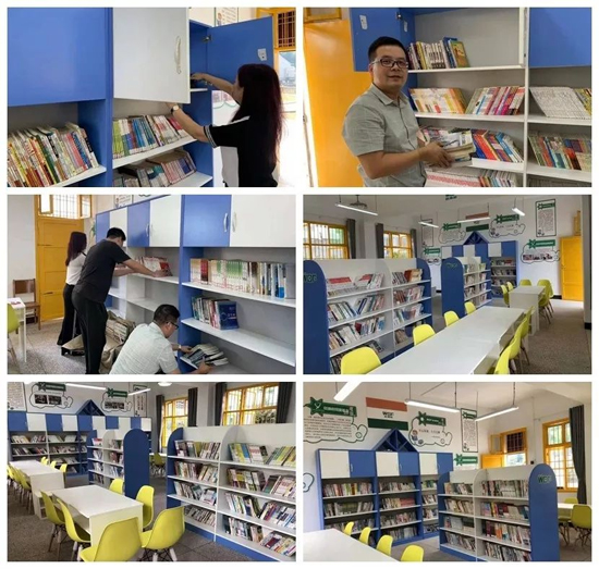 活動進行到揭牌儀式,全體師生移步至圖書館參加揭牌儀式。楊曙光秘書長與當地教育局領導、校方領導、知名媒體愛心公益人士、當地萬象銀天品牌合作伙伴共同舉行了簡單而隆重的揭牌儀式。