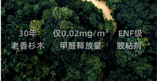 精選貴州30年以上的天然老香杉木,富含香杉木醇,木材紋理通直,結構均勻,純精方一級指接杉木板芯。搭配無甲醛添加的ENF級膠粘劑,甲醛釋放量僅0.02mg/m3,優于國家ENF級環保標準,裝完短時間通風,就能安心住新家。