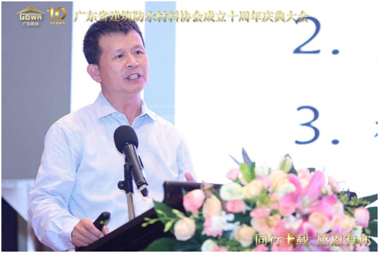 廣東省建筑防水材料協(xié)會(huì)會(huì)長(zhǎng)張泳東致辭,并作《風(fēng)雨之后見(jiàn)彩虹-廣東防水行業(yè)十年發(fā)展暨未來(lái)展望》主題報(bào)告分享。