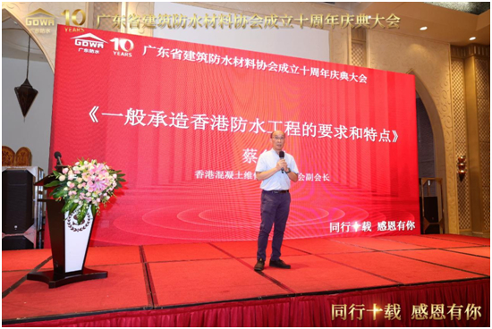 香港混凝土維修及防水協(xié)會(huì)副會(huì)長(zhǎng)蔡允治作主題報(bào)告,分享香港防水工程的要求和特點(diǎn)。