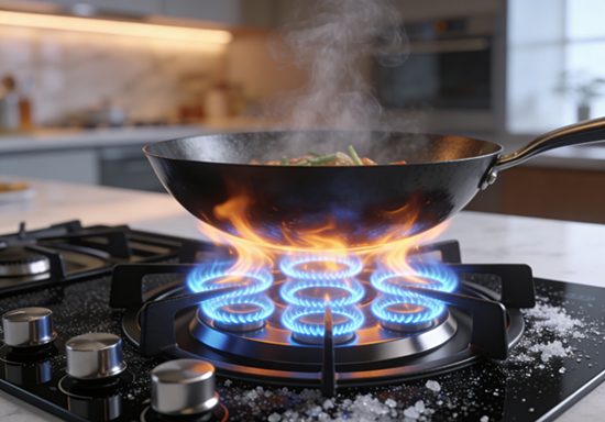 看看方太、老板、華帝的當家花旦,5.2kW的超燃大火力已是標配,這不再是簡單的火焰噴射,而是“四翼渦輪噴射燃燒技術”與“3D烈焰燃燒系統”的精密協作。以卡薩帝的“鑒賞家系列”為例,其五環火設計能讓火焰如漣漪般完美覆蓋鍋底,配合精確到1℃的控溫技術,煎牛排不再是碰運氣的賭博,而是精準的科學實驗。