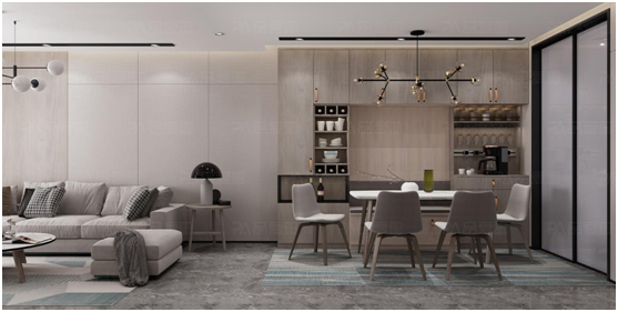 “秋日晴風(fēng)”系列的創(chuàng)新推出,秉承當(dāng)下多數(shù)業(yè)主對原木色的情有獨(dú)鐘,通過大面積的天然原木色材質(zhì)的色彩紋理,以及自然的過渡,降低了視覺沖擊,模糊了生活與自然的邊界,尋回人們對自然純粹的眷戀。看似質(zhì)樸卻又格外的溫暖,極簡的設(shè)計(jì)賦予空間靈動,流暢的線條交織夢幻優(yōu)雅。