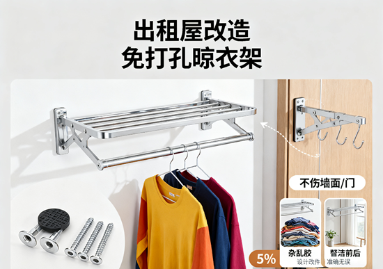 二、免打孔晾衣架的革新:從"破壞"到"無痕"