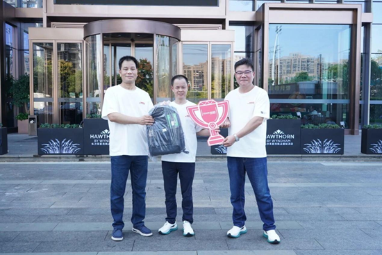 共同為“愛(ài)格跑·萬(wàn)象行”第一名頒發(fā)紀(jì)念獎(jiǎng)品